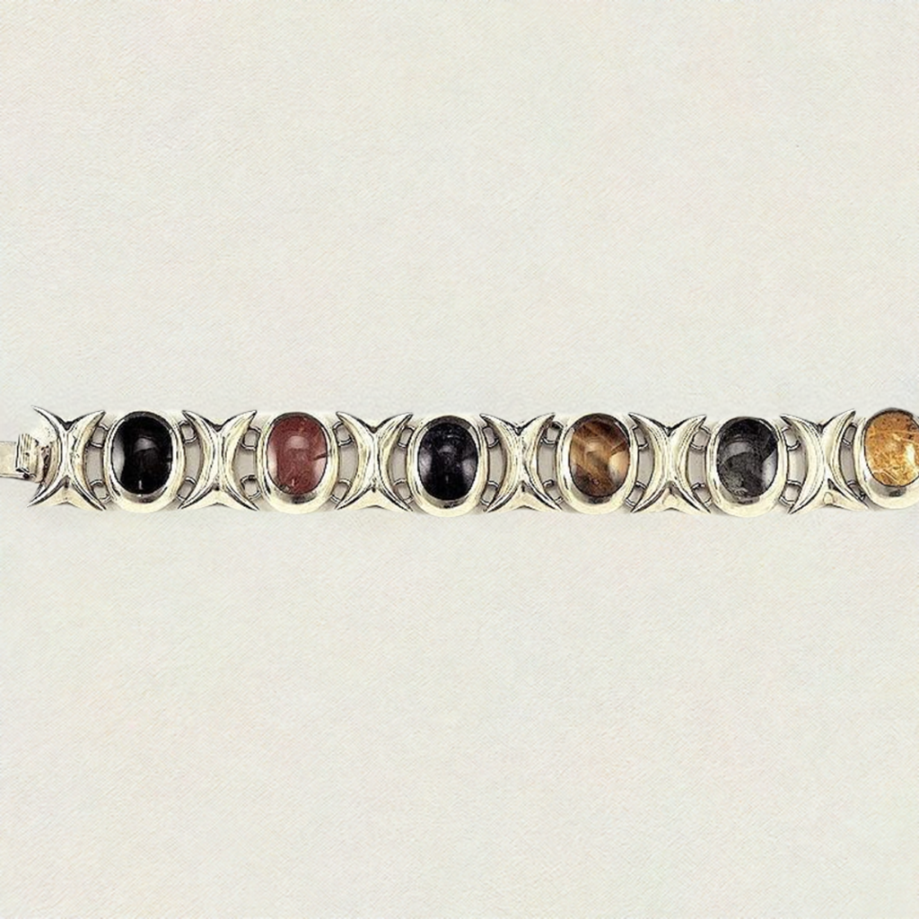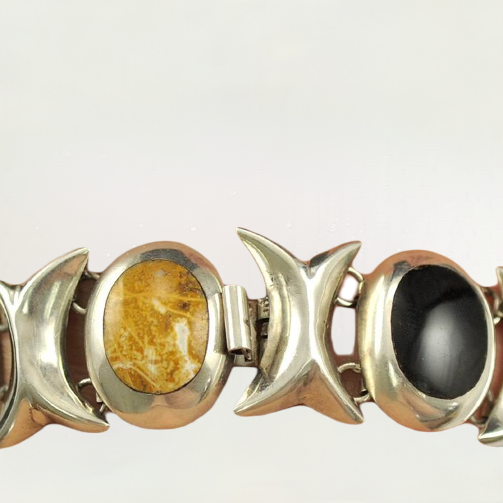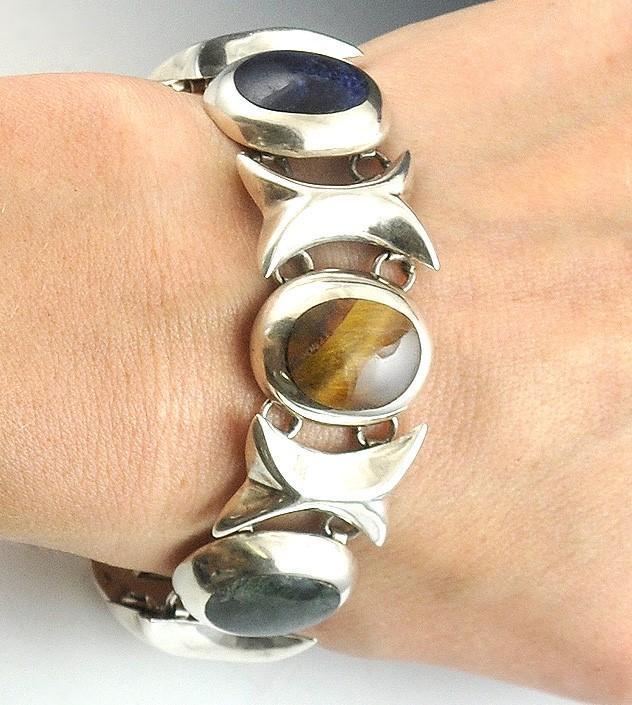 Sterling Silver Agate/Tigers Eye Link Bracelet from Mexico