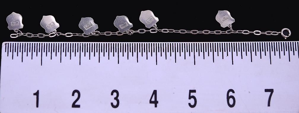 The chain is marked "925" for sterling silver on the last link of the bracelet. Each charm is stamped "sterling" as well.
