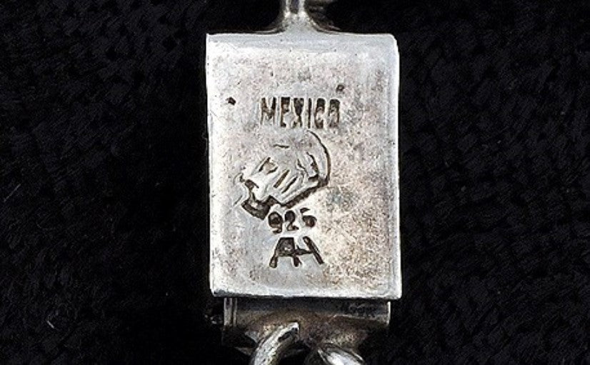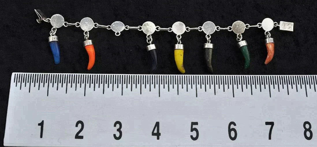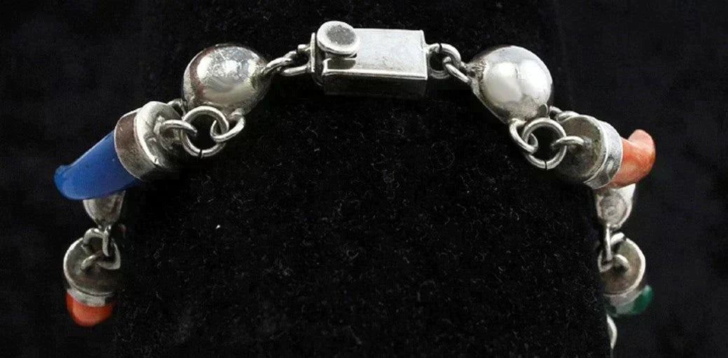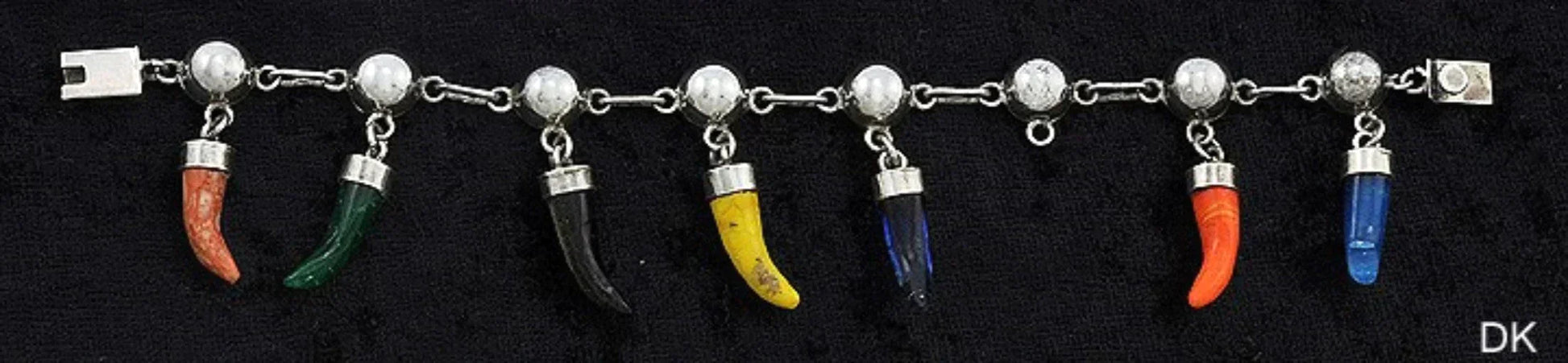 Sterling Silver and Genuine Stone and Glass "Fang" Bracelet Mexican