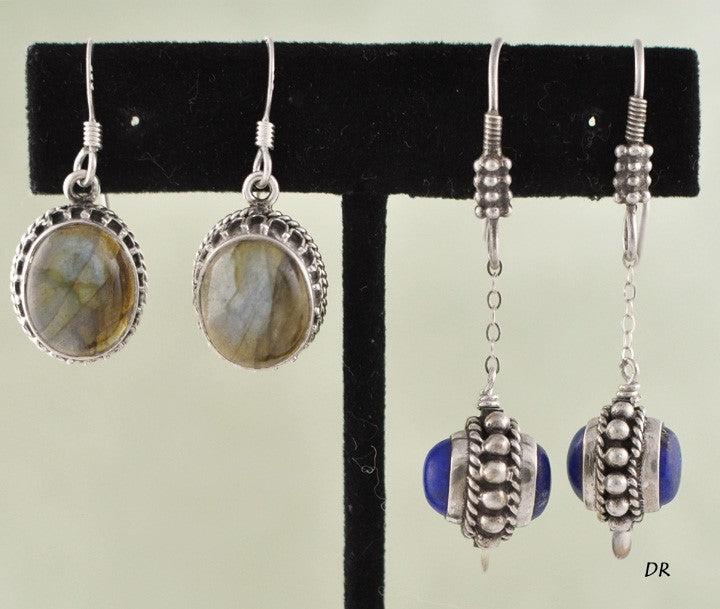 Sterling Silver Blue Lapis Stone Pierced Earrings