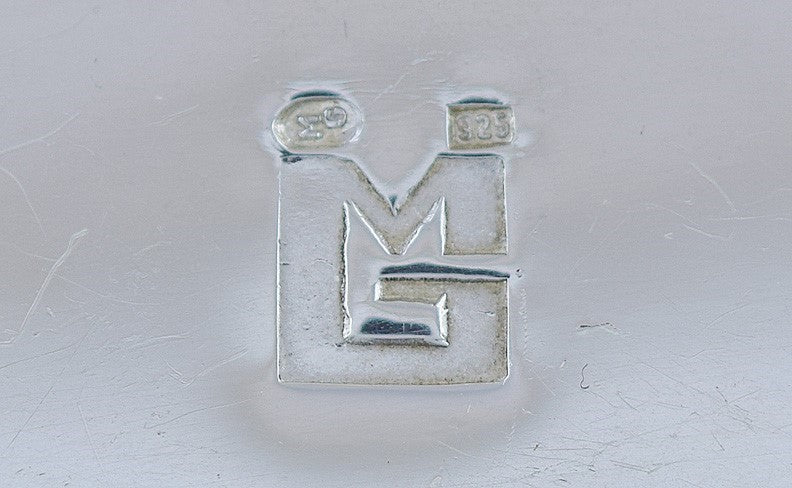 This piece is stamped on the back with 925 for sterling silver. The MG marking stands for Mariusz Gliwinski, whose Amber Moda collection of modern amber jewelry makes him one of Poland’s most prestigious designers.