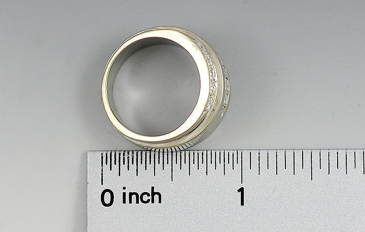 Striking 14K White Gold & Diamond Wide Band Ring Size 7.5