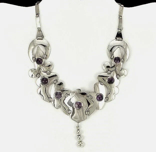 Presented is a fantastic sterling silver and amethyst vintage collar necklace.