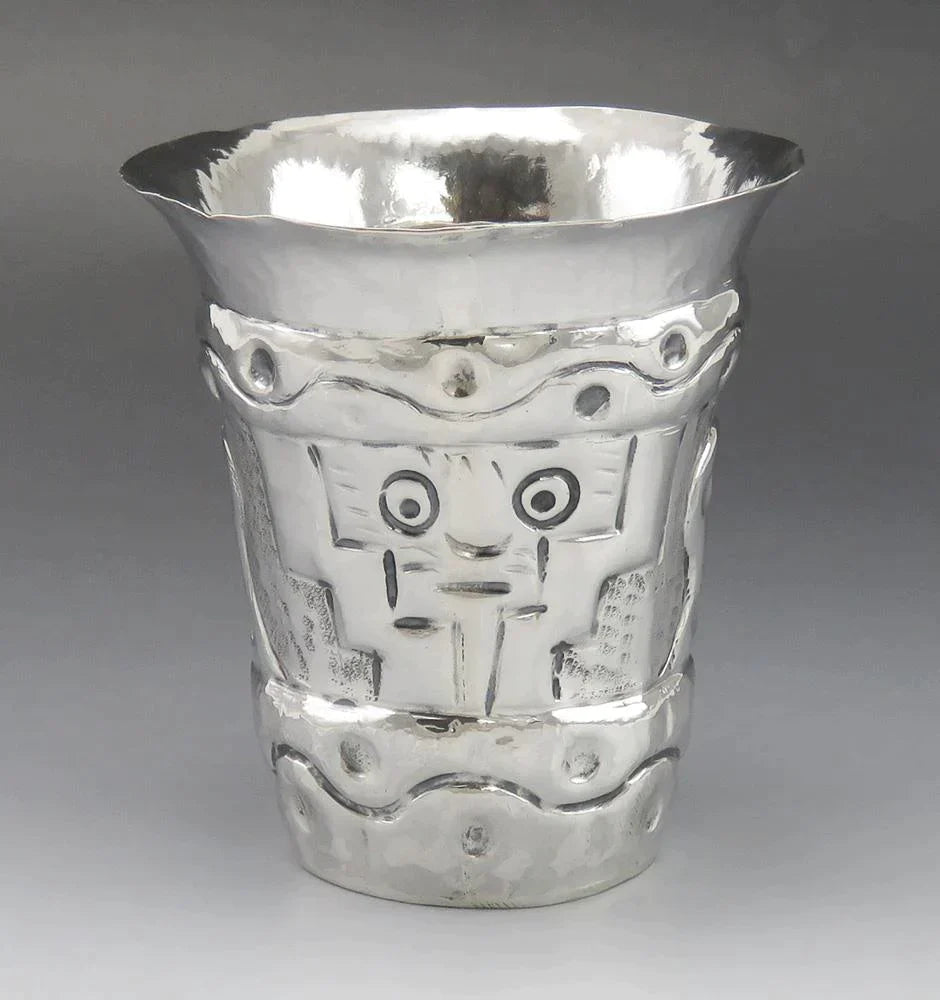 Striking Vintage 1960s Peruvian 900 Silver Handwrought Cup Beaker
