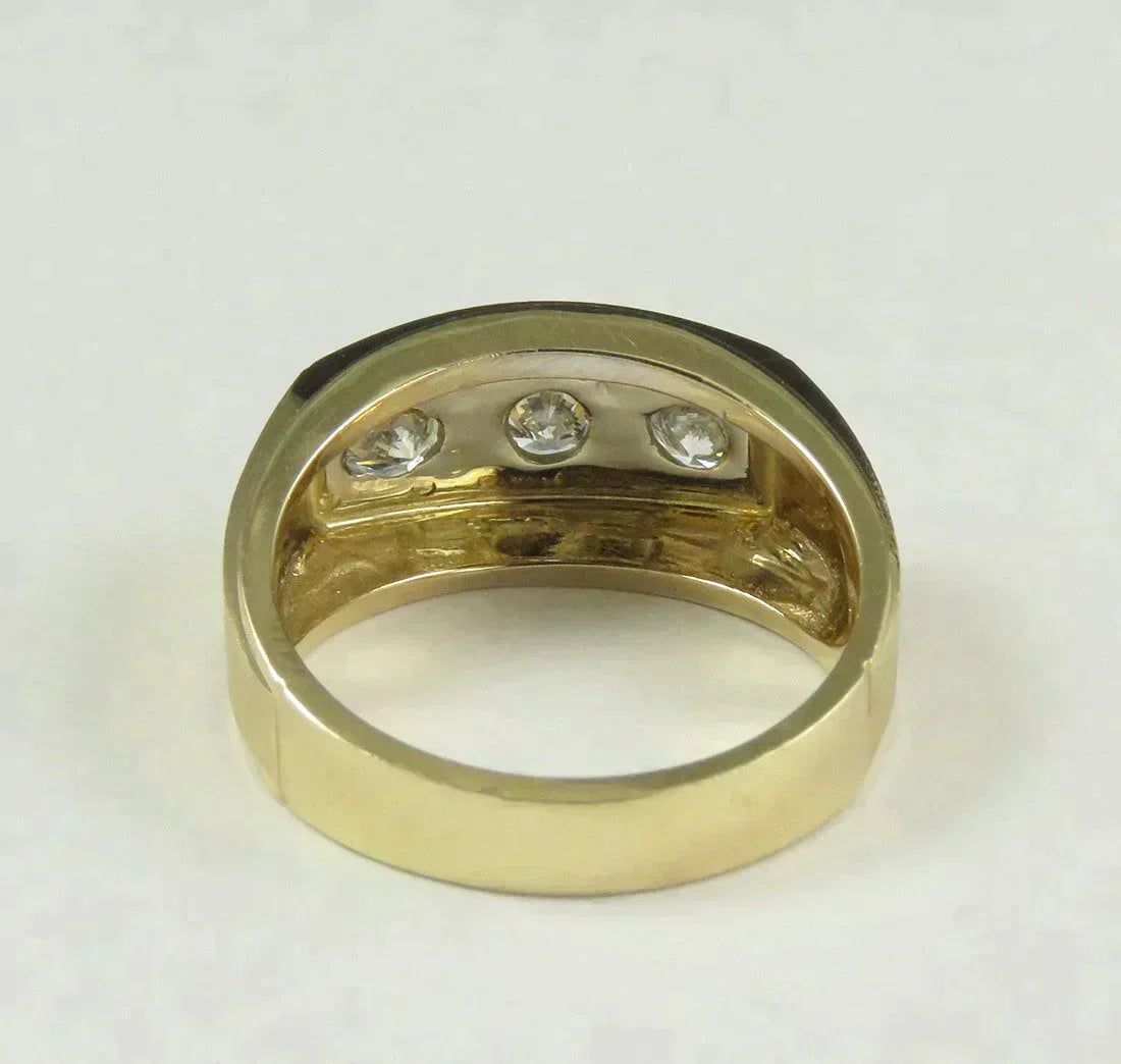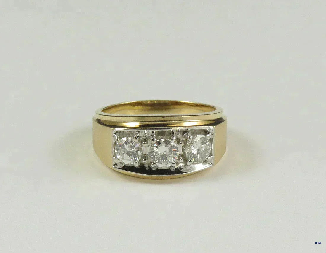 Stunning 14k Brushed Yellow Gold ~1.2ct Triple Diamond Ring Size 9