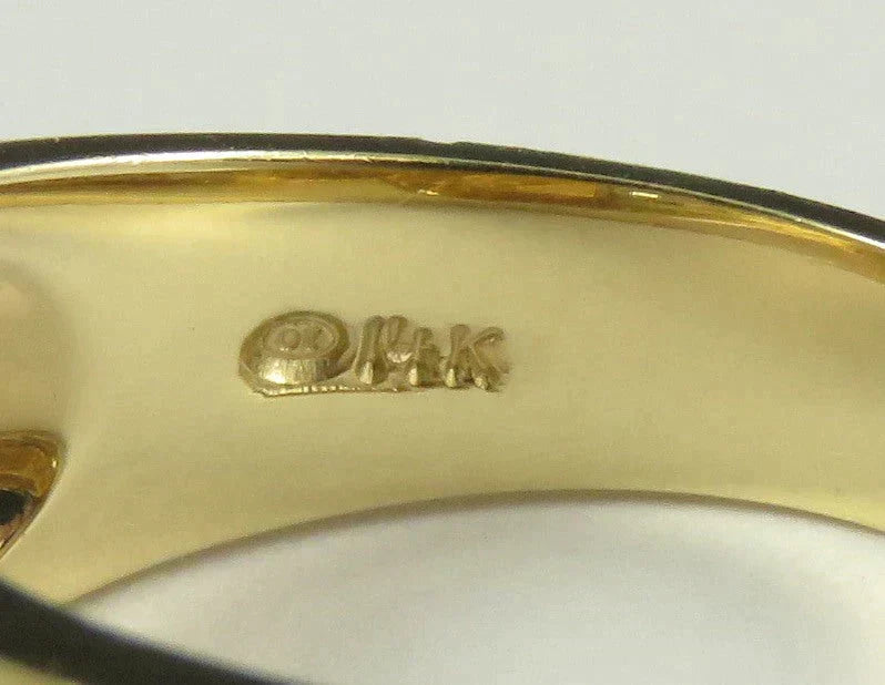 The ring is stamped and guaranteed 14k, as well as a maker's mark.