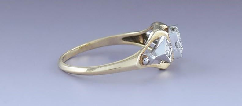 Stunning 14k Gold & Platinum ~.58ct Diamond Three Stone Engagement Ring