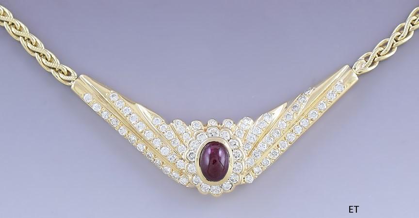 Stunning 14k Gold Ruby Cabochon & ~1.5ct Diamond Necklace