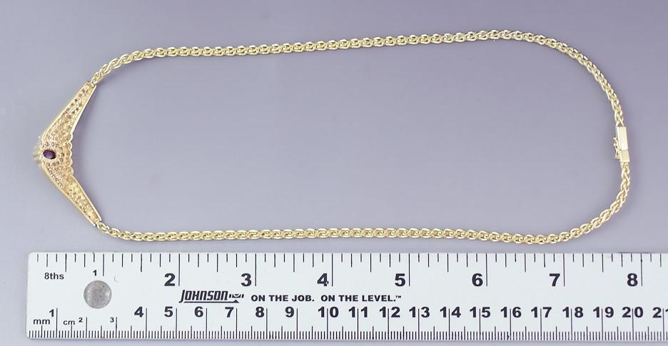 The necklace is in great condition. The ruby and diamonds are securely set.