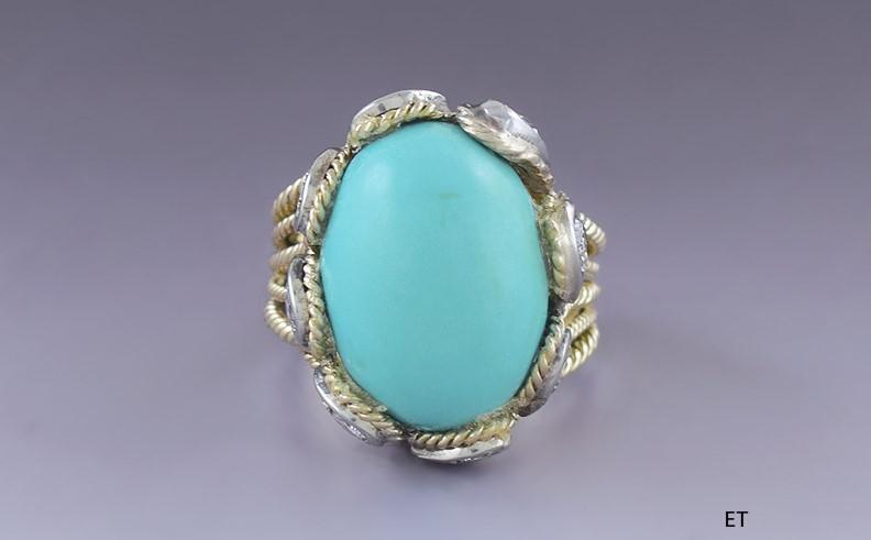 with an oval cabochon of gorgeous dark blue-green turquoise, measuring about
