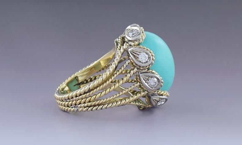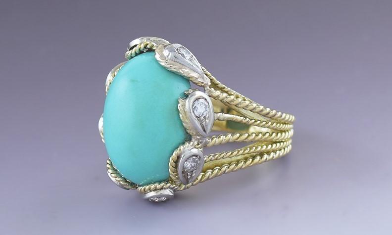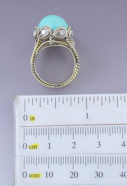 Stunning 14k Yellow Gold Turquoise Cabochon & Diamond Ring