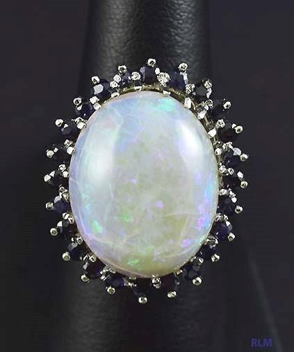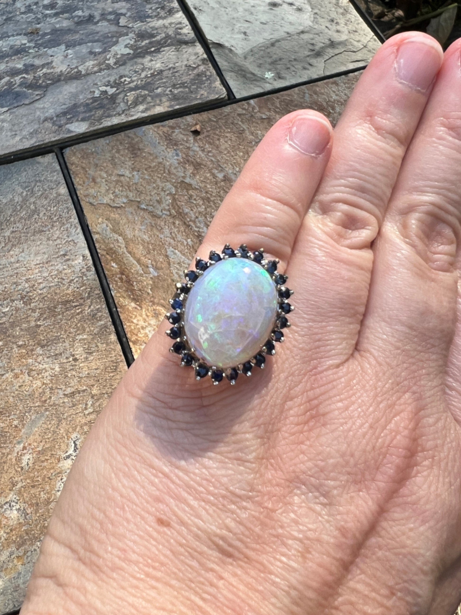 Stunning 14k White Gold Opal & Sapphire Ring Size 7