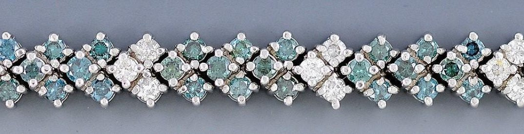 Stunning 14k White Gold White & Blue/Green Diamond Bracelet
