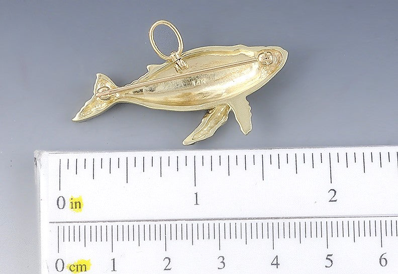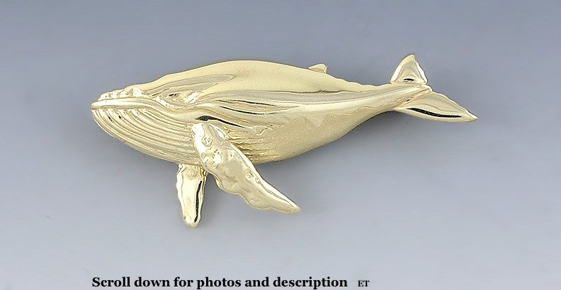 Stunning 14k Yellow Gold Humpback or Blue Whale Brooch Pin Pendant