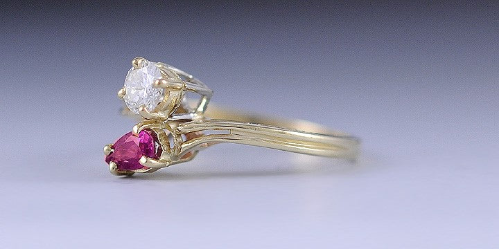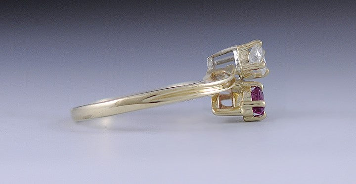 Stunning 14K Yellow Gold Ruby & Sparkling Diamond Toi Et Moi Ring Size 6.25
