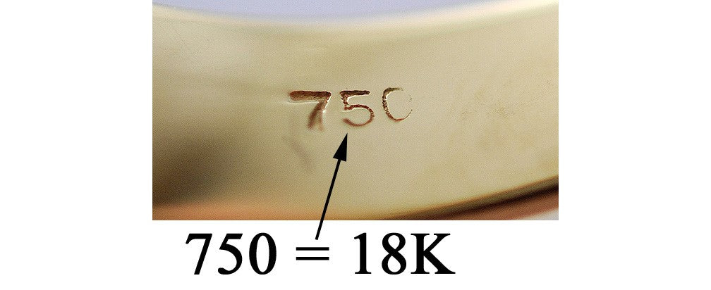 The inside of the ring is marked 750 for 18 karat purity gold.