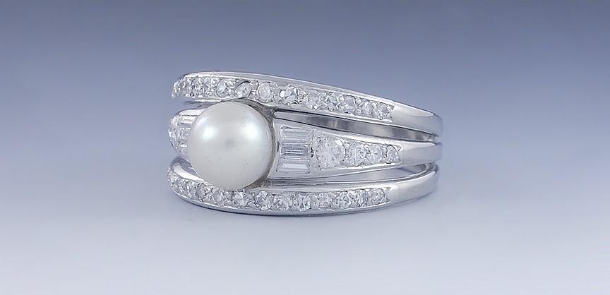 of the ring is set with a beautiful white pearl of 7 millimeters in diameter.