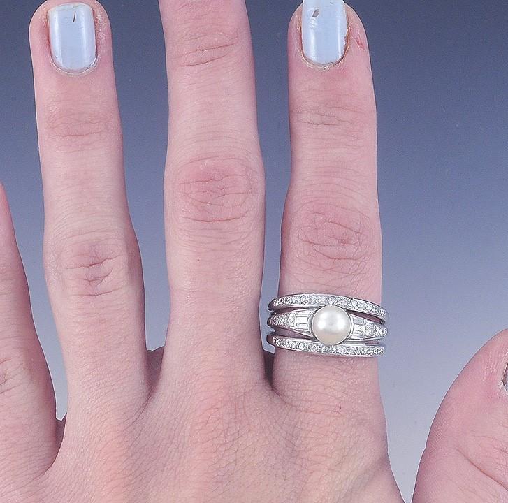 Stunning 18K White Gold .85ct Diamond & Pearl Ring Sz 10 1/4