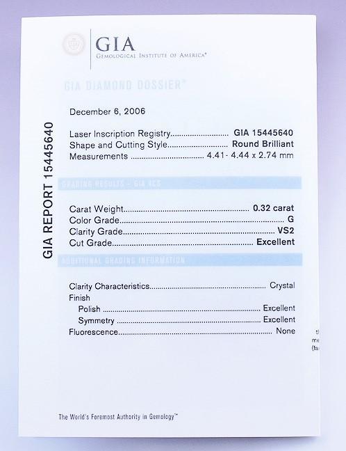 (just shy of a third of a carat). The diamond is graded VS-2 clarity and G