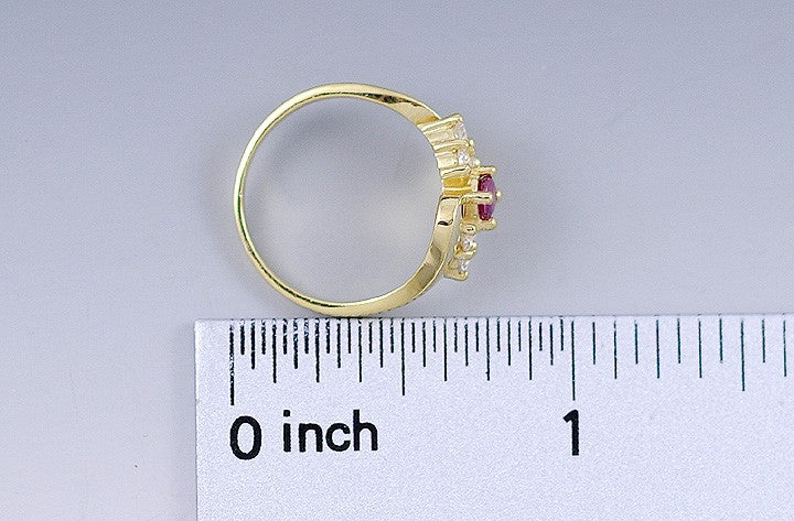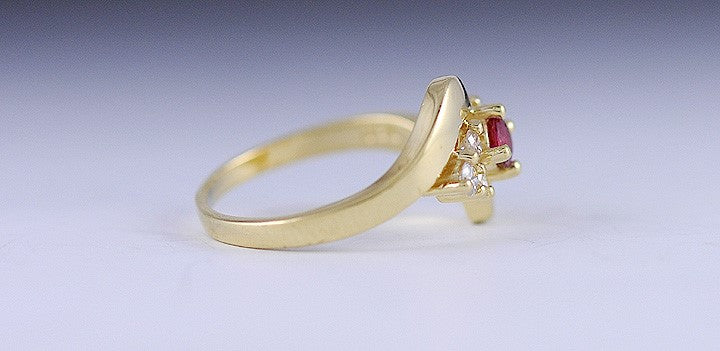 Stunning 18K Yellow Gold Red Ruby and Diamond Ring Size 4.25