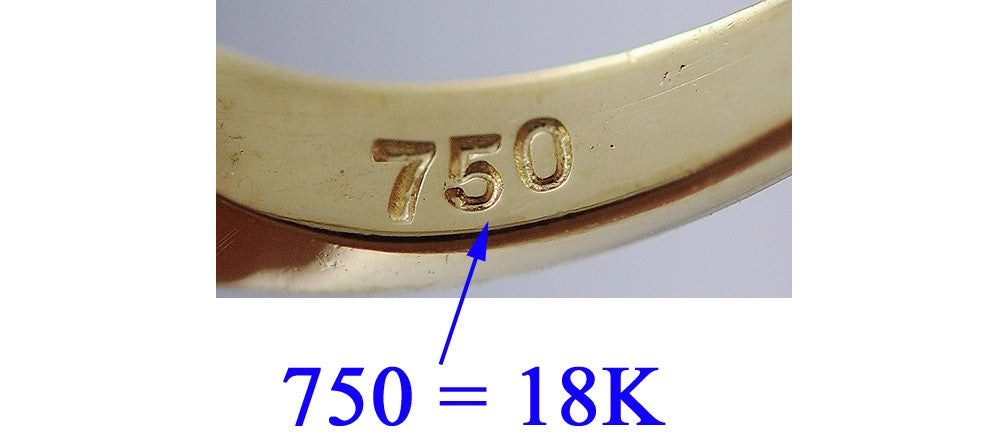 The ring is marked on the inside with 750 for 18K gold. We have tested it with nitric acid and guarantee it to be 18K gold.