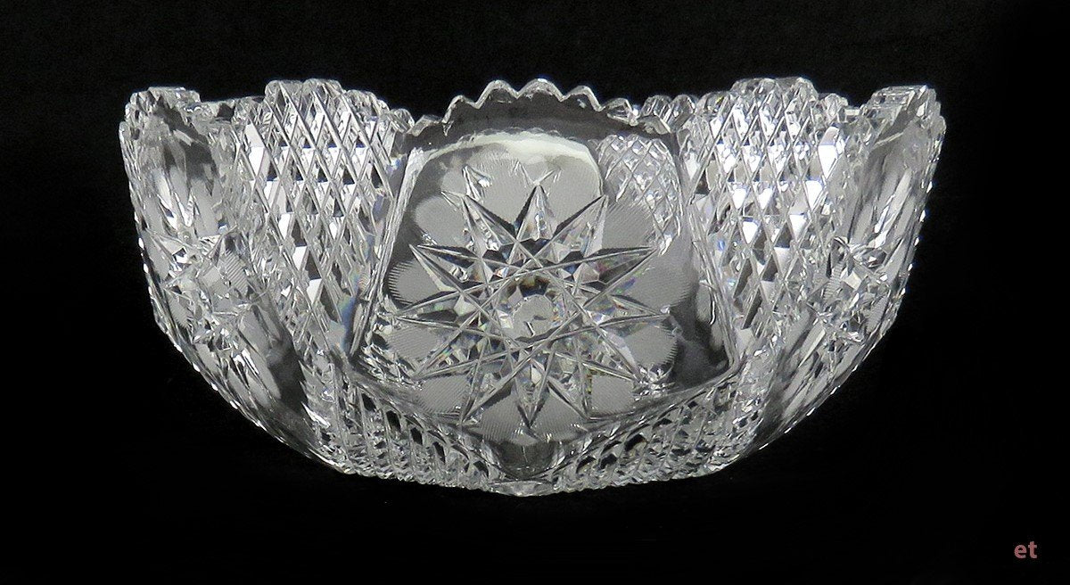 (A kind person told us that "I believe this bowl was originally made by the Empire Cut Glass CO. I have a bowl with almost exactly the same type of patterns (throughout) along w/ the bowl being of same shape, which Woody Auctions, LLC attributed to said-same when they listed it at auction")