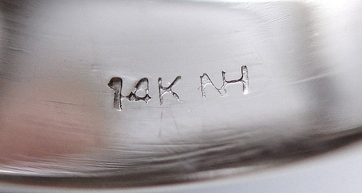 The interior of the band is stamped 14k and has a maker's mark of 'NH'.