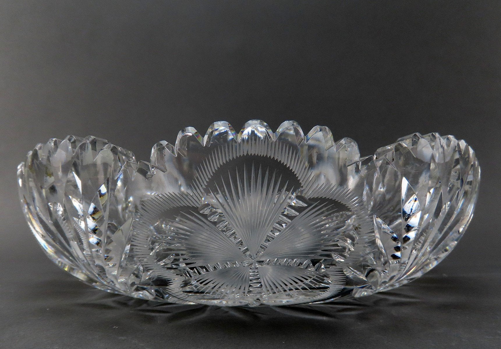 Stunning American Brilliant Period Cut Glass Floral Five Petal Flower Bowl 9"
