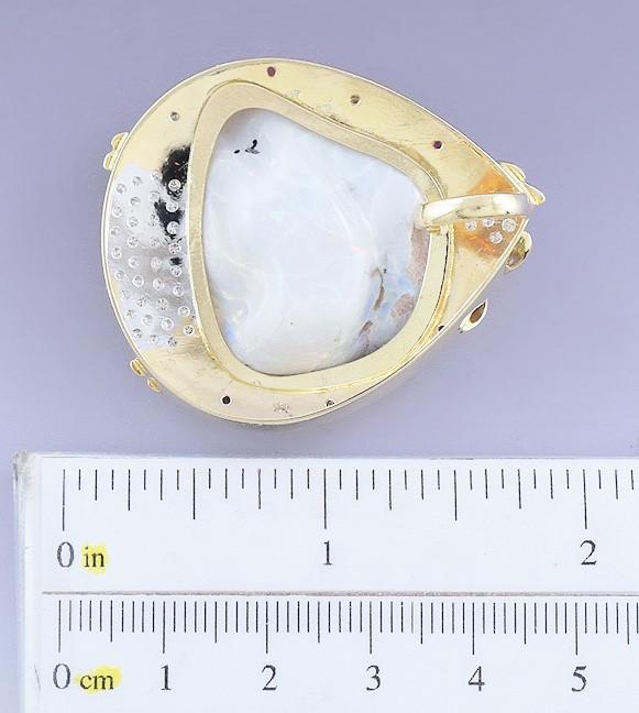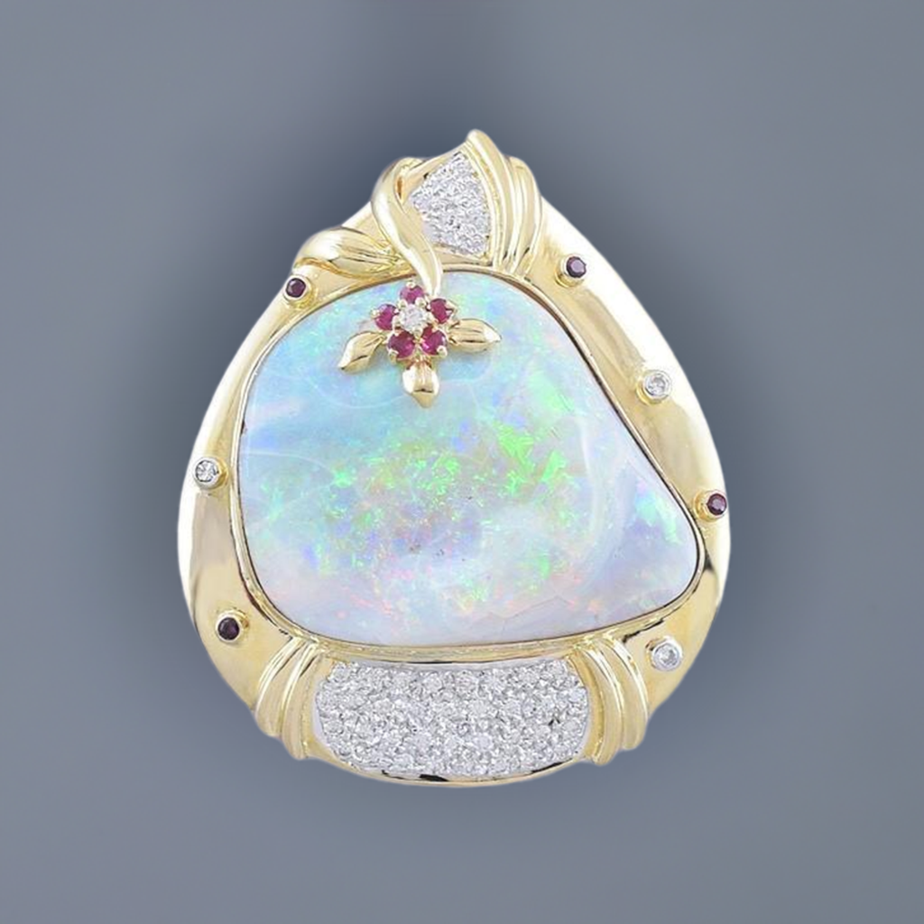 Stunning Large 18k Gold Naturalistic Opal Diamond & Ruby Pendant