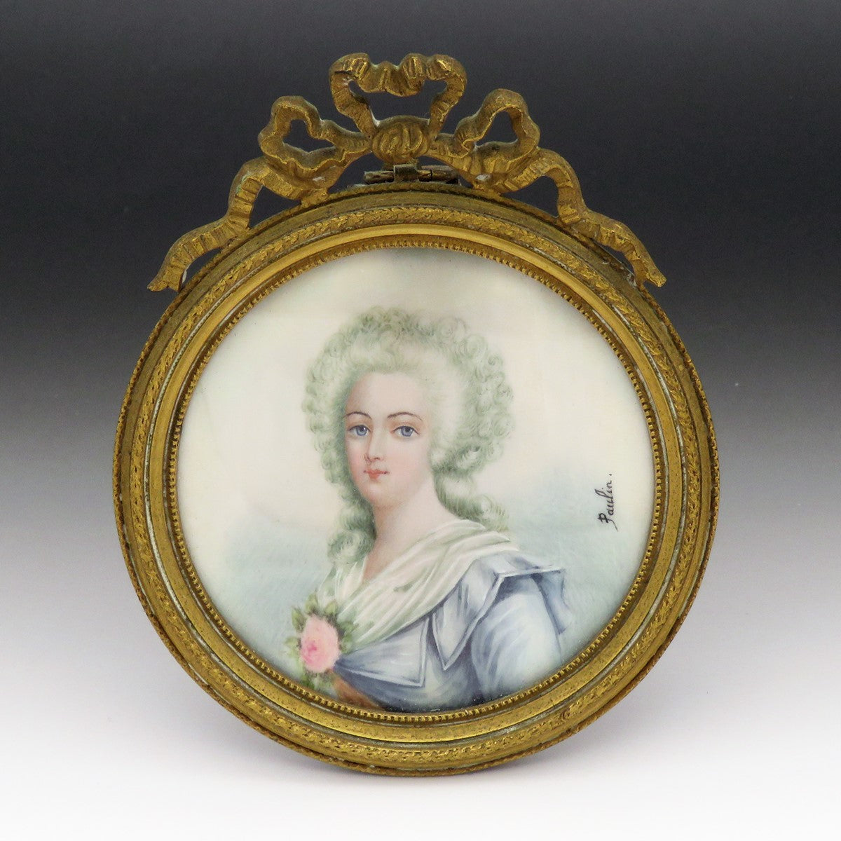 Stunning Mid/Late 1800s French Hand-Painted Portrait Gilt Brass Frame