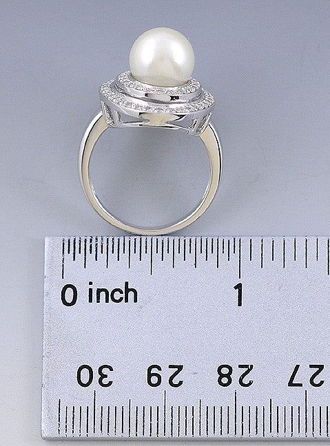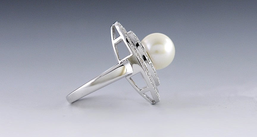 Stunning Pearl & Diamond 14K White Gold Halo Ring Size 7