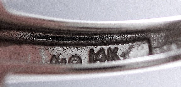 The band is stamped and guaranteed 14k and has a maker's mark we do not recognize.