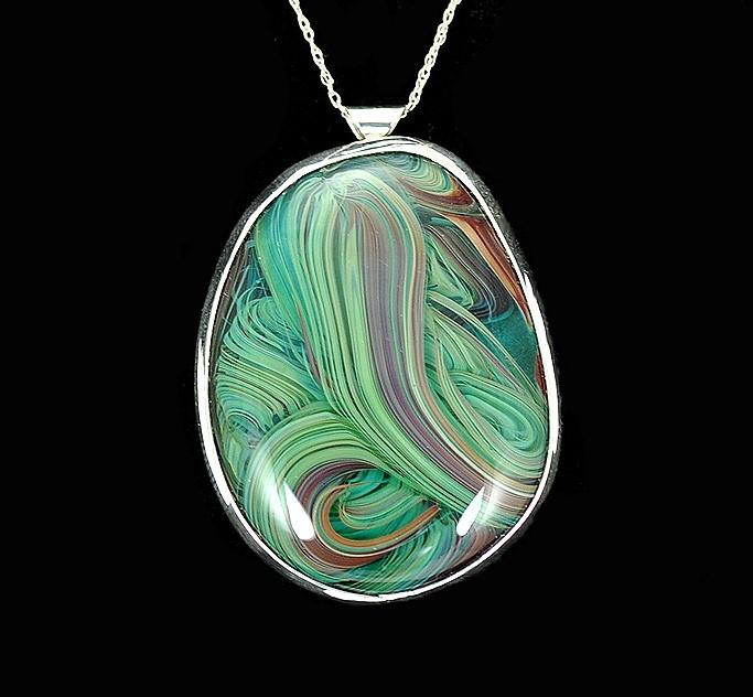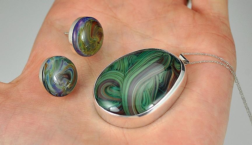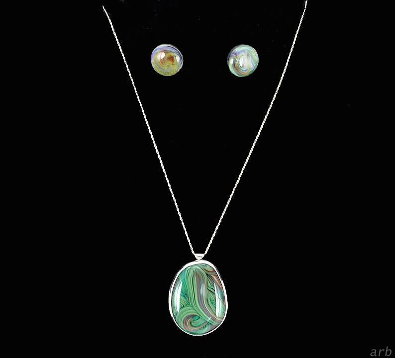 Stunning Sterling Silver 18" Necklace W/ Bezel Set Glass Pendant and Earrings