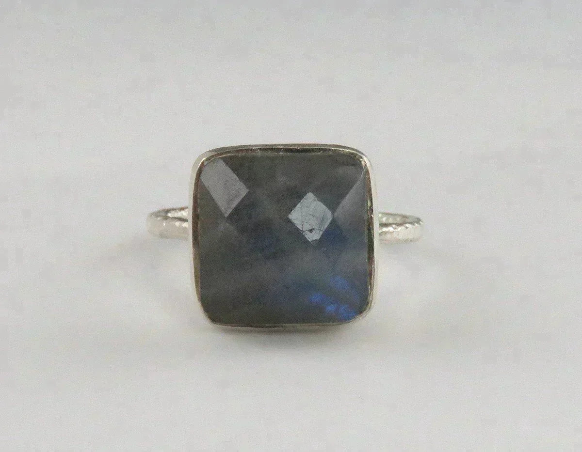 Stunning Sterling Silver and Labradorite Ring Size 8
