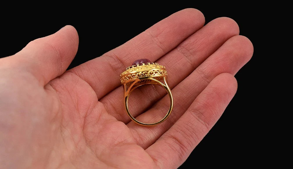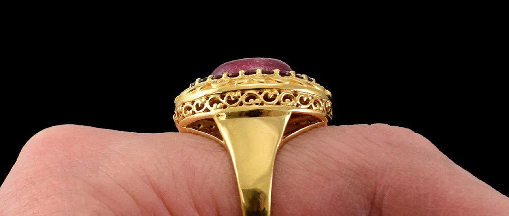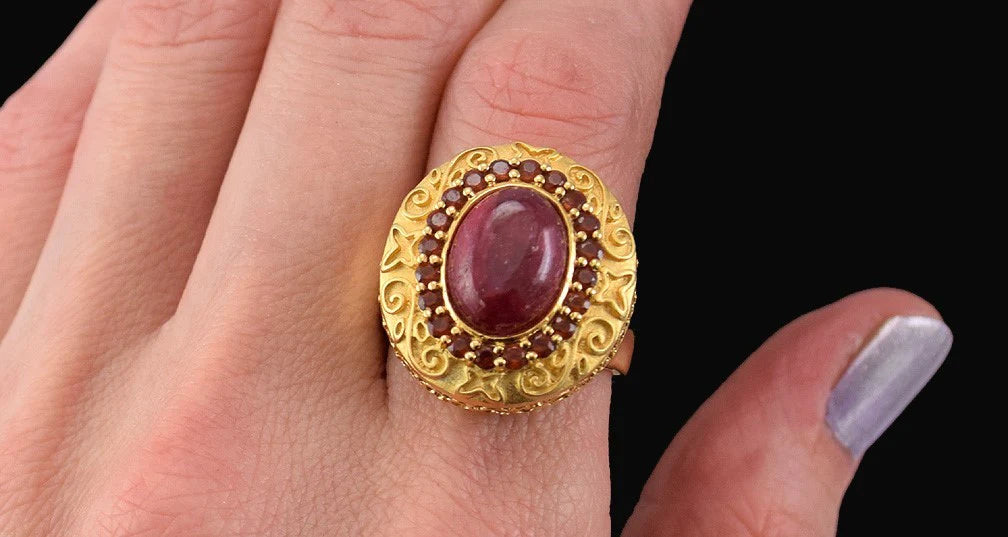 Presented is a stunning sterling silver ring set with a red ruby and red citrine stones.