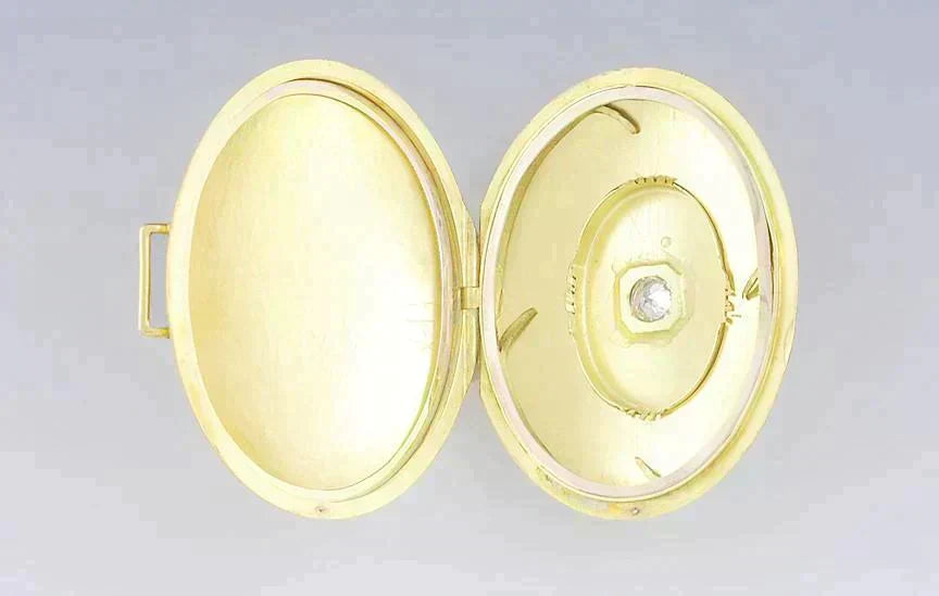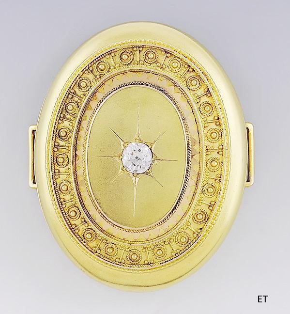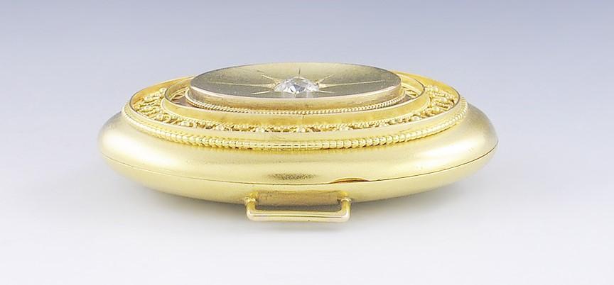 applied gold beading and wirework. In the center of the locket is a dazzling old