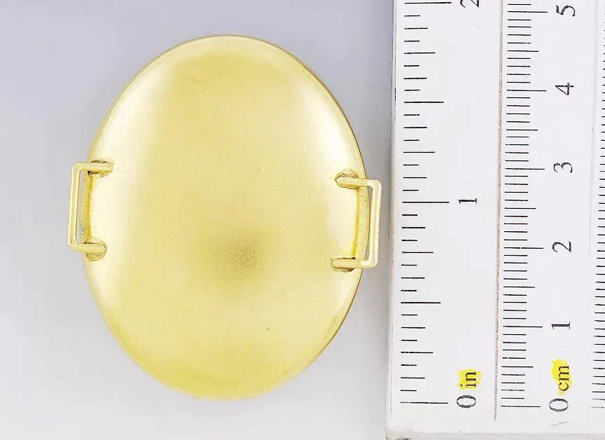 The locket measures about 1 3/4 by 1 1/2 inches.