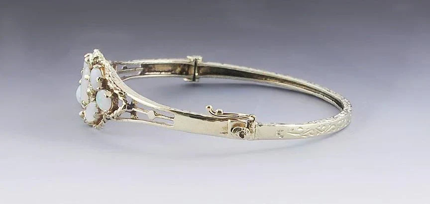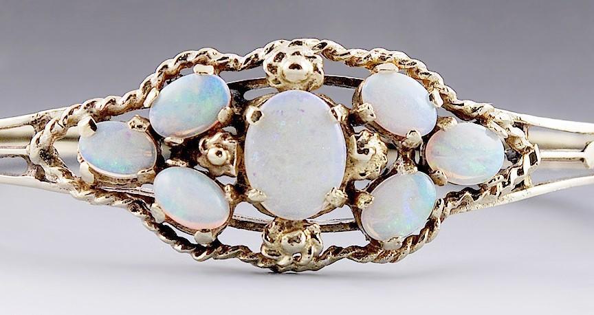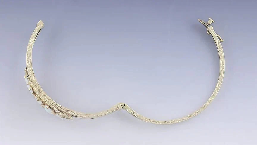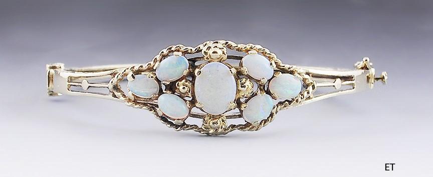 Stunning Vtg 14k Gold & Opal Hinged Bracelet