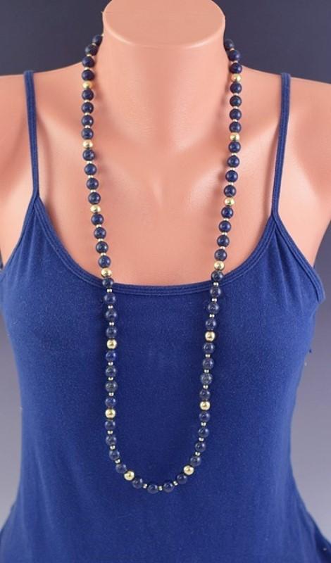 Stunning VTG Opera Length 14k Yellow Gold Lapis Lazuli Beaded Necklace 37"