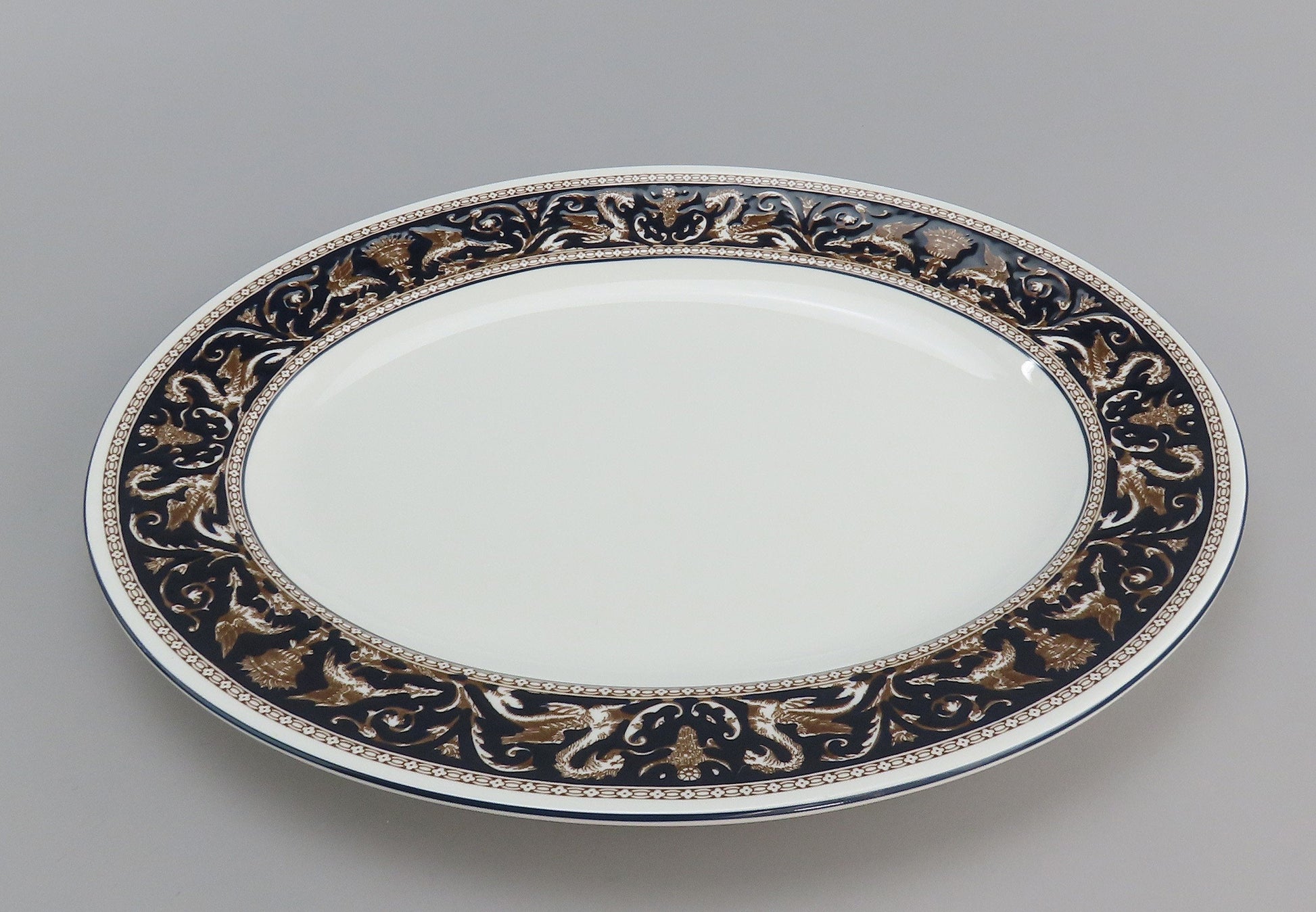 Stunning Wedgwood Florentine Dark Blue Navy Trim W1956 LG Platter 17 1/2" Long