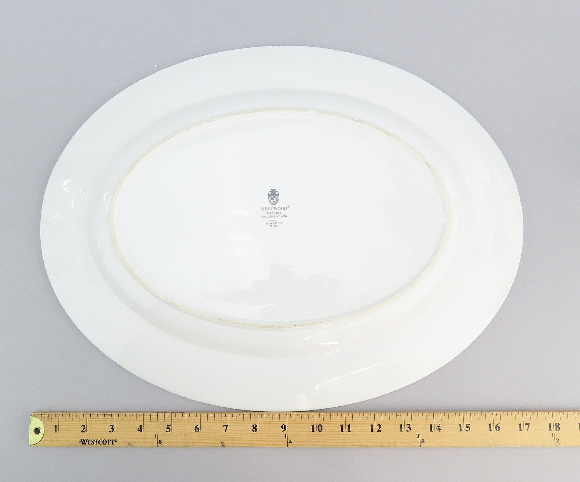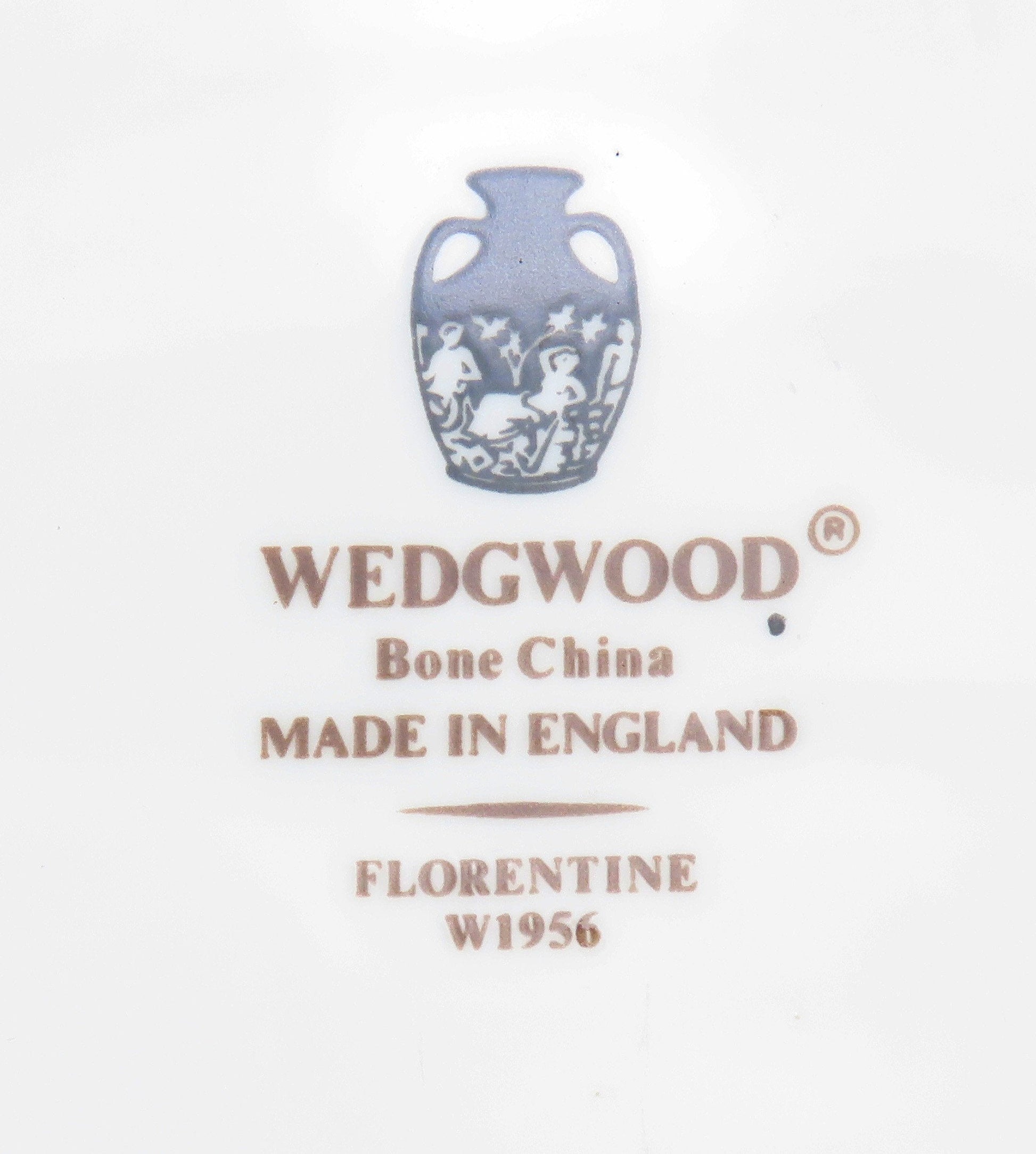 The underside is marked with the maker's mark for Wedgwood. It is also marked Bone China, “Made in England”, and with the pattern name. We have other pieces in this pattern. We encourage you to view our page or reach out if you are interested in more of this collection.