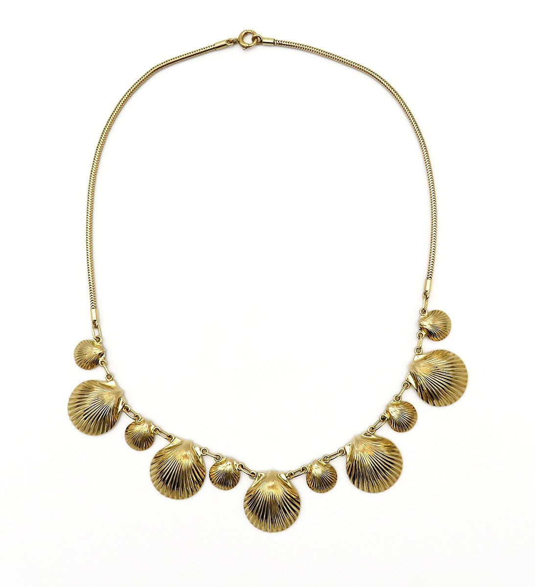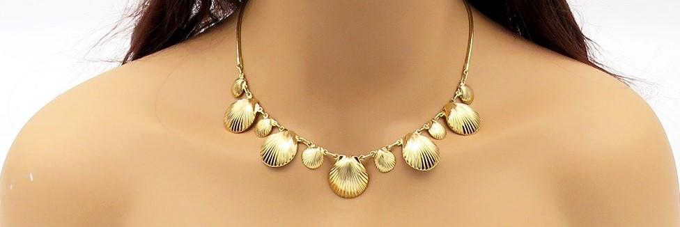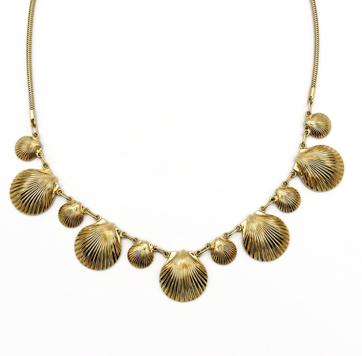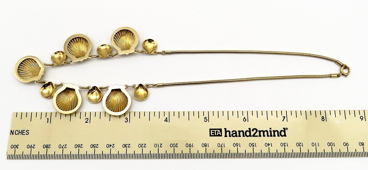 Stylish 14k Yellow Gold Seashell Scallop Clam Shells Necklace