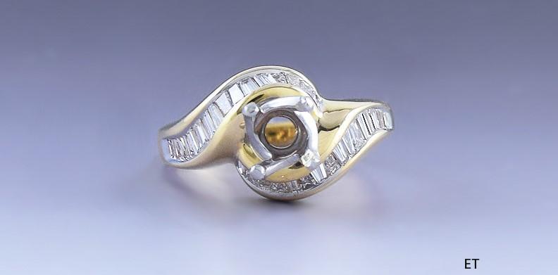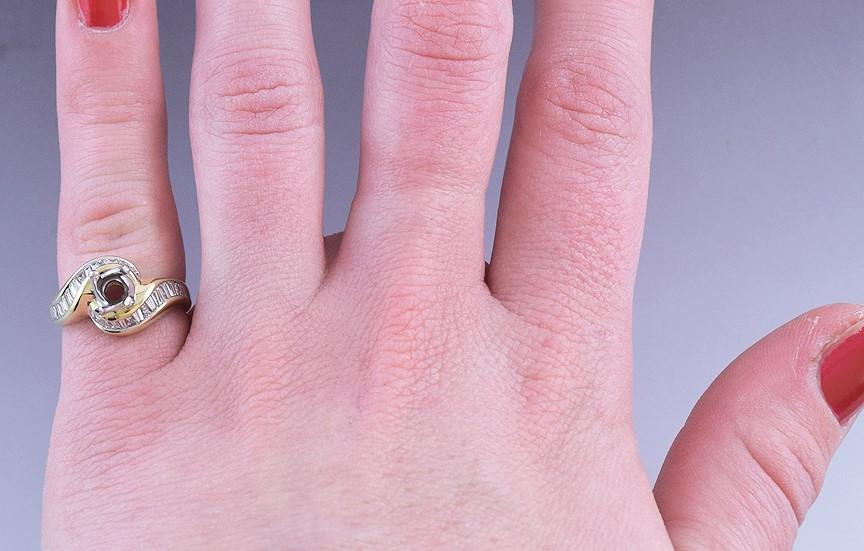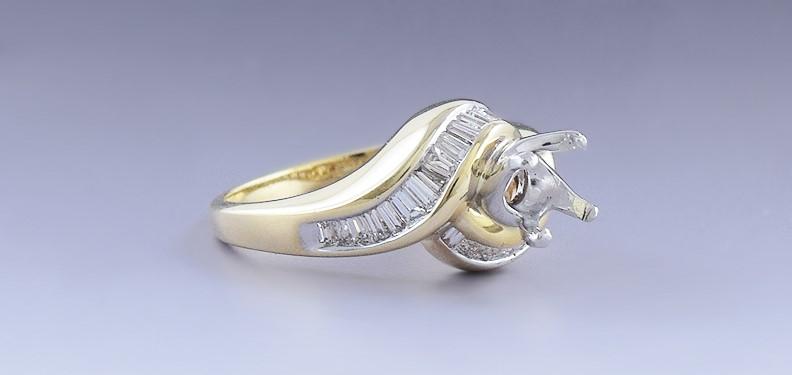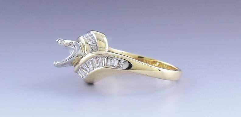 design. On either side of the empty setting are 32 total baguette cut diamonds,