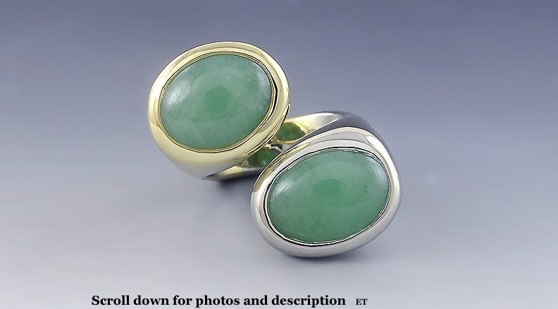 Superb 18k White and Yellow Gold Green Jadeite Jade Bypass Ring Heavy Setting