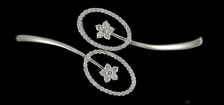 The flowers and the ovals are covered with modern round brilliant cut diamonds.