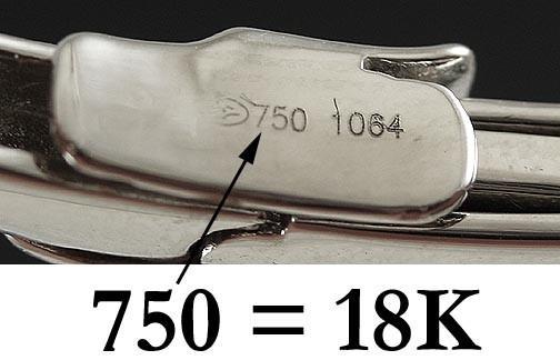 The bracelet is marked on the latch with 750 for 18K gold. We have tested