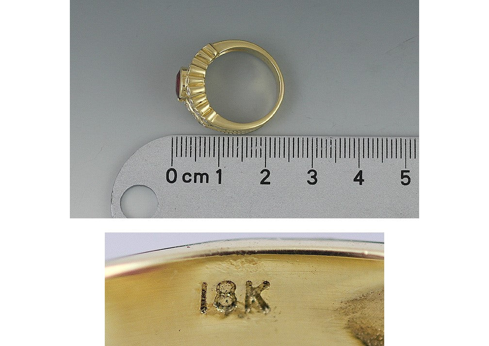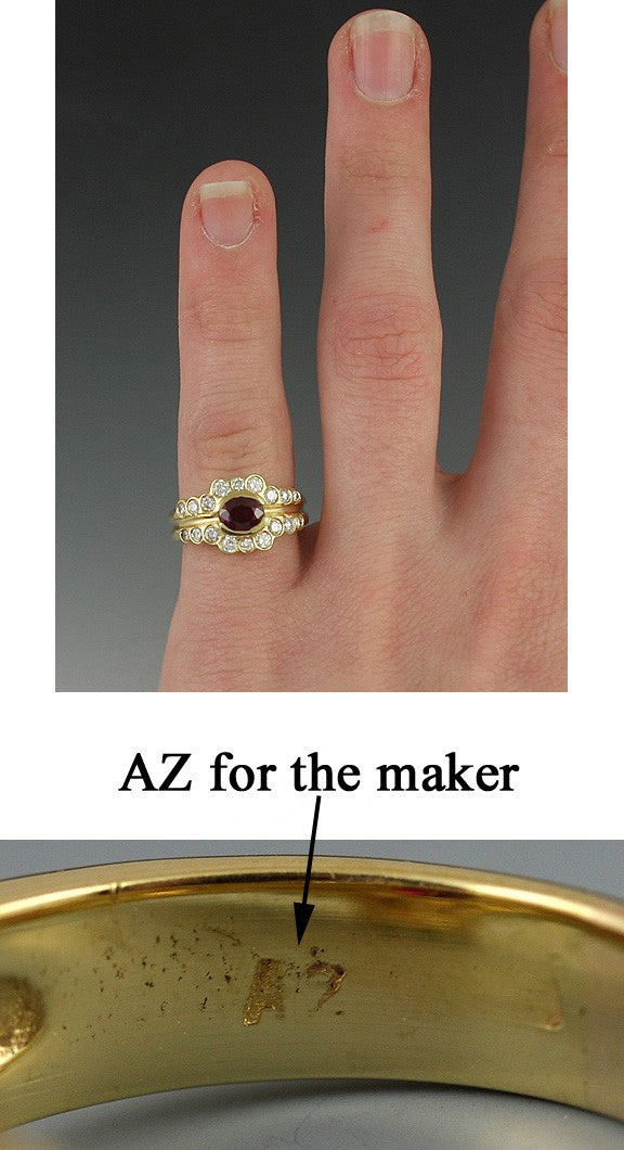 The ring is marked on the inside of the band with 18K for the gold purity and AZ for the maker's mark.