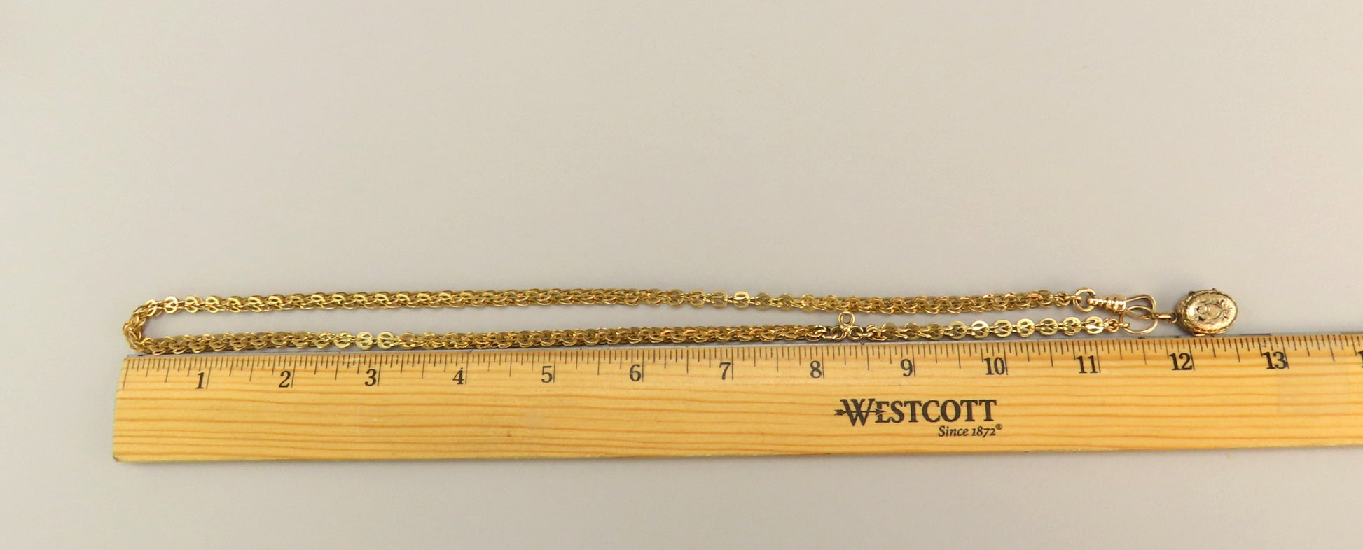 Superb c1850s Victorian 14k Gold 23" Watch Chain Necklace w GF/10k Locket