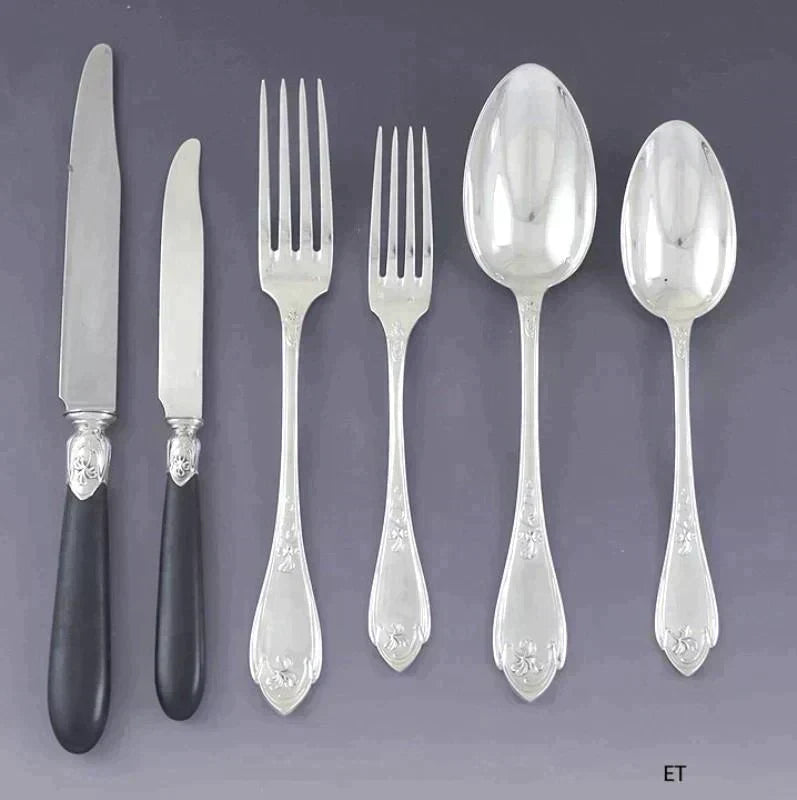 Presented is a fabulous French silver 84 piece flatware set. This set dates to