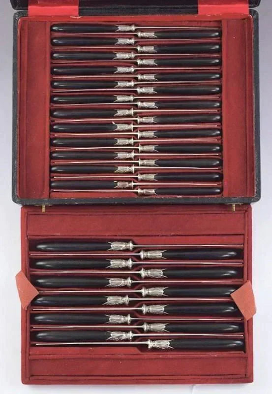950 purity silver, and the maker's mark for Charles Hack. The 12 knives with
